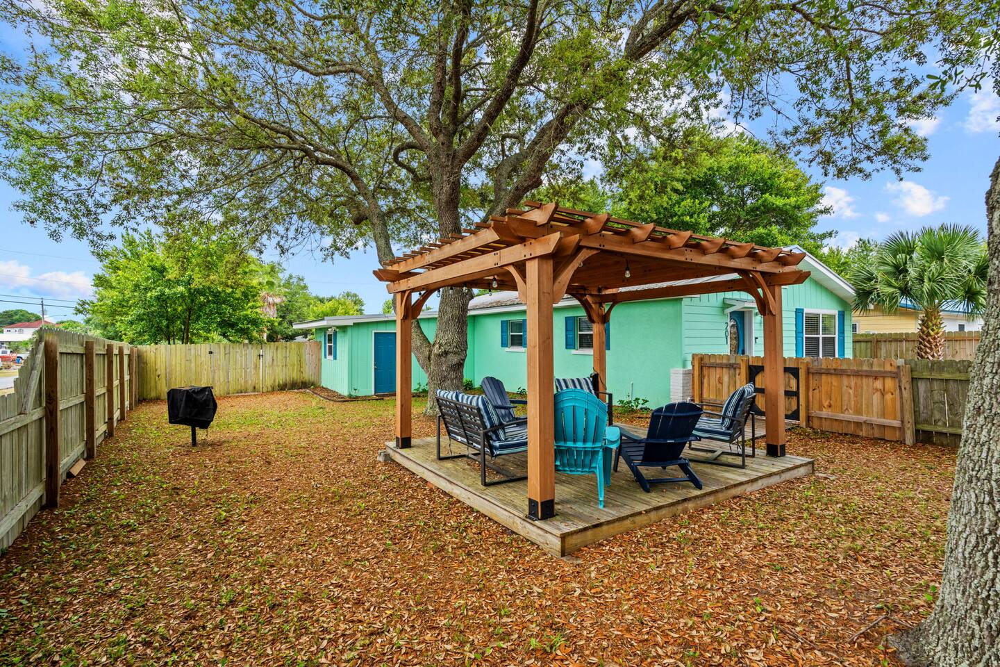 Welcome to your perfect Panama City Beach getaway — just 0.5 miles (a breezy 10-minute walk) from the sugar-white sands and emerald waters! ✔ Entire Home – Exclusively Yours Enjoy total privacy in a stylish, fully equipped home that’s all yours during your stay. ✔ Prime Location Only a 10-minute walk to the beach! Load up the wagon with chairs, towels, and an umbrella (all provided!) and stroll to the shoreline with ease. ✔ Sleep Like Royalty Sink into luxurious bedding that feels like sleeping on a cloud — perfect for unwinding after a day in the sun. ✔ Spa-Inspired Touches We provide premium bath products, black makeup towels, and hair dryers in every bathroom for your convenience. ✔ Towels Galore No need to pack extras — we provide plush bath towels, hand towels, and beach towels for everyone in your group. ✔ Laundry Made Easy In-unit washer & dryer with non-toxic Blueland detergent and organic wool dryer balls — great for freshening up after beach days. ✔ Spacious & Organized The primary bedroom features a large walk-in closet — plenty of space for your luggage and beachgear. ✔ Cook Up a Storm Enjoy a fully stocked kitchen with modern stainless steel appliances — perfect for preparing meals or entertaining. ✔ Parking Perks Private driveway fits up to 4 vehicles or even a trailer, plus tons of free street parking available. ✔ Stay Connected Fast, fiber optic WiFi and 3 Smart TVs with YouTube TV — perfect for movie nights or remote work. ✔ Outdoor Hangout Zone Relax under the pergola with a cozy sitting area — a great spot for morning coffee, evening drinks, or late-night chats with your crew. ★ The Location ★ Our home is ideally located just minutes from all of the top attractions, making it the perfect home base for beachgoers, families, and adventure-seekers alike. We're just a short drive or walk to Frank Brown Park, where you’ll find ball fields, a pool and a large playground- perfect for athletes and families attending tournaments or just looking to stay active. Hungry or looking to shop? Head over to Pier Park, filled with restaurants, shops, entertainment, and stunning views from the pier itself. It's all right down the street! And of course, you’re not far from what you came for- those sugar-white sandy beaches and crystal-clear Gulf waters are just minutes away by car or by foot to Beach Access 65! Whether you're soaking up the sun, catching a sunset, or enjoying a beach day with the family, it’s all incredibly easy from our centrally located space. Of note, it's an easy drive to and from the Northwest Florida Beaches international airport located only 12 miles away.